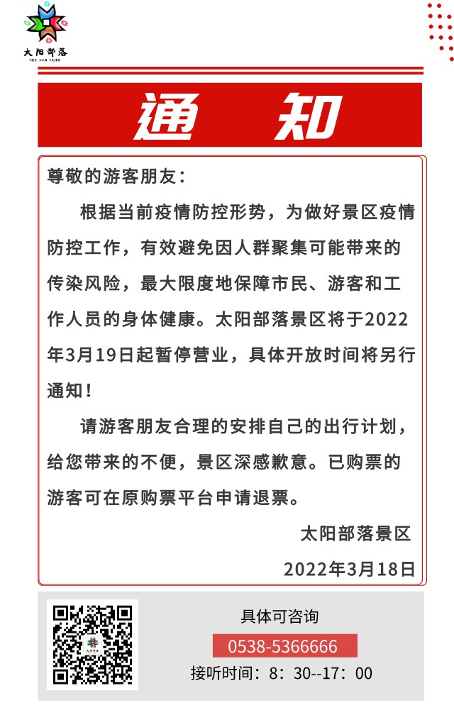 關(guān)于泰安太陽部落景區(qū)的暫時(shí)閉園通知