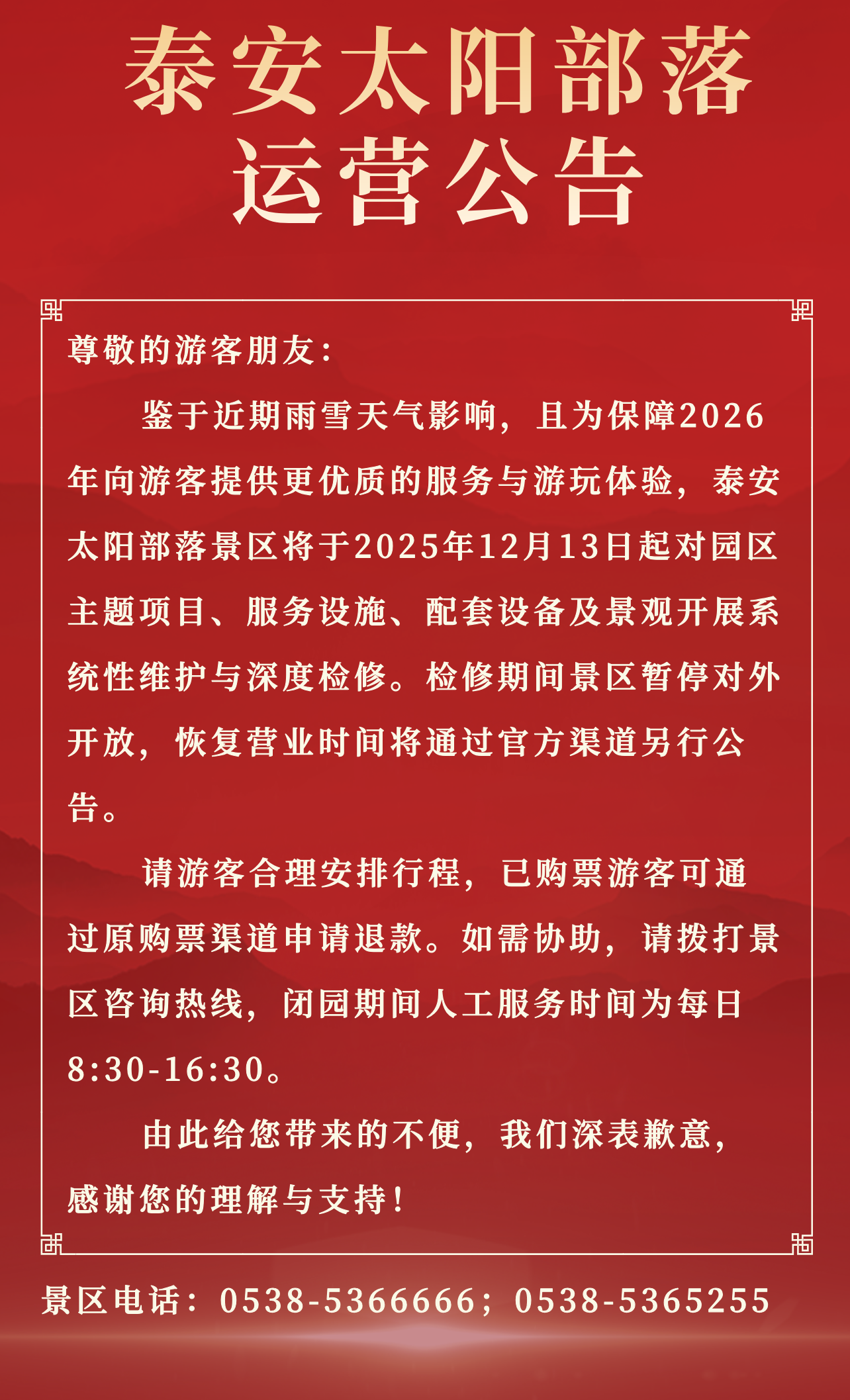 關(guān)于景區(qū)暫停開放公告