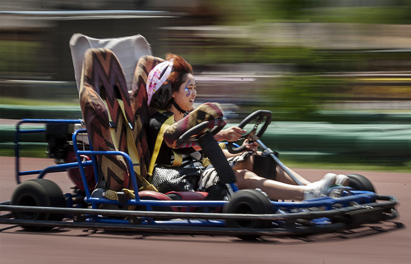 狂奔是一項(xiàng)刺激的、具有魅力的運(yùn)動(dòng),安裝初級(jí)發(fā)動(dòng)機(jī)的車(chē)輛,最高時(shí)速大約是100公里;而安裝高級(jí)競(jìng)賽發(fā)動(dòng)機(jī)的車(chē)輛能達(dá)到160公里以上的時(shí)速。同時(shí),由于車(chē)型小巧,車(chē)底板距路面僅4厘米,車(chē)手實(shí)際感覺(jué)到的速度要比車(chē)輛實(shí)際速度高2倍到3倍,就是說(shuō)感覺(jué)時(shí)速達(dá)300公里以上。在駕車(chē)轉(zhuǎn)彎時(shí),會(huì)產(chǎn)生象一級(jí)方程式賽車(chē)轉(zhuǎn)彎時(shí)那樣的橫向加速度(約3到4倍于重力加速度),使駕駛者體驗(yàn)到一種平時(shí)體驗(yàn)不到的樂(lè)趣。