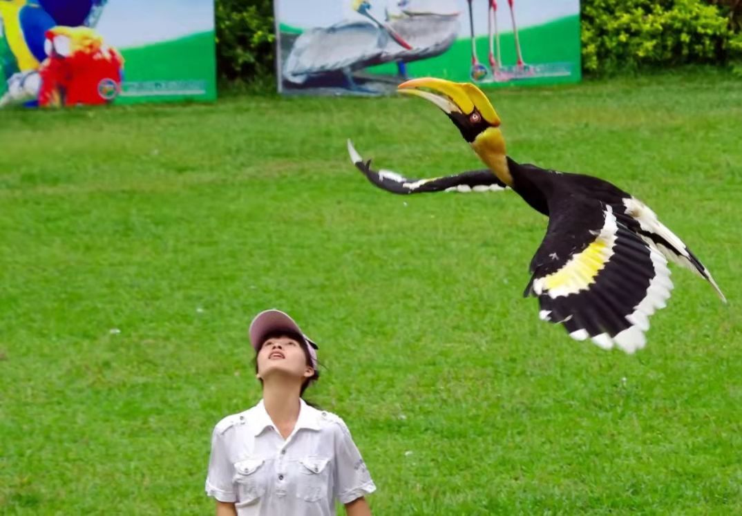 隨著馴獸師的一聲號令,各種動物邁著矯健的步伐依次走過表演場地,不論是地上跑的,空中飛的,還是高矮胖瘦、溫順和兇猛的動物都依次接受游客的檢閱。