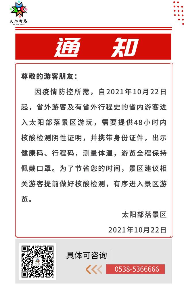 提醒!省外游客參觀太陽部落景區(qū)須持48小時(shí)內(nèi)核酸陰性證明!